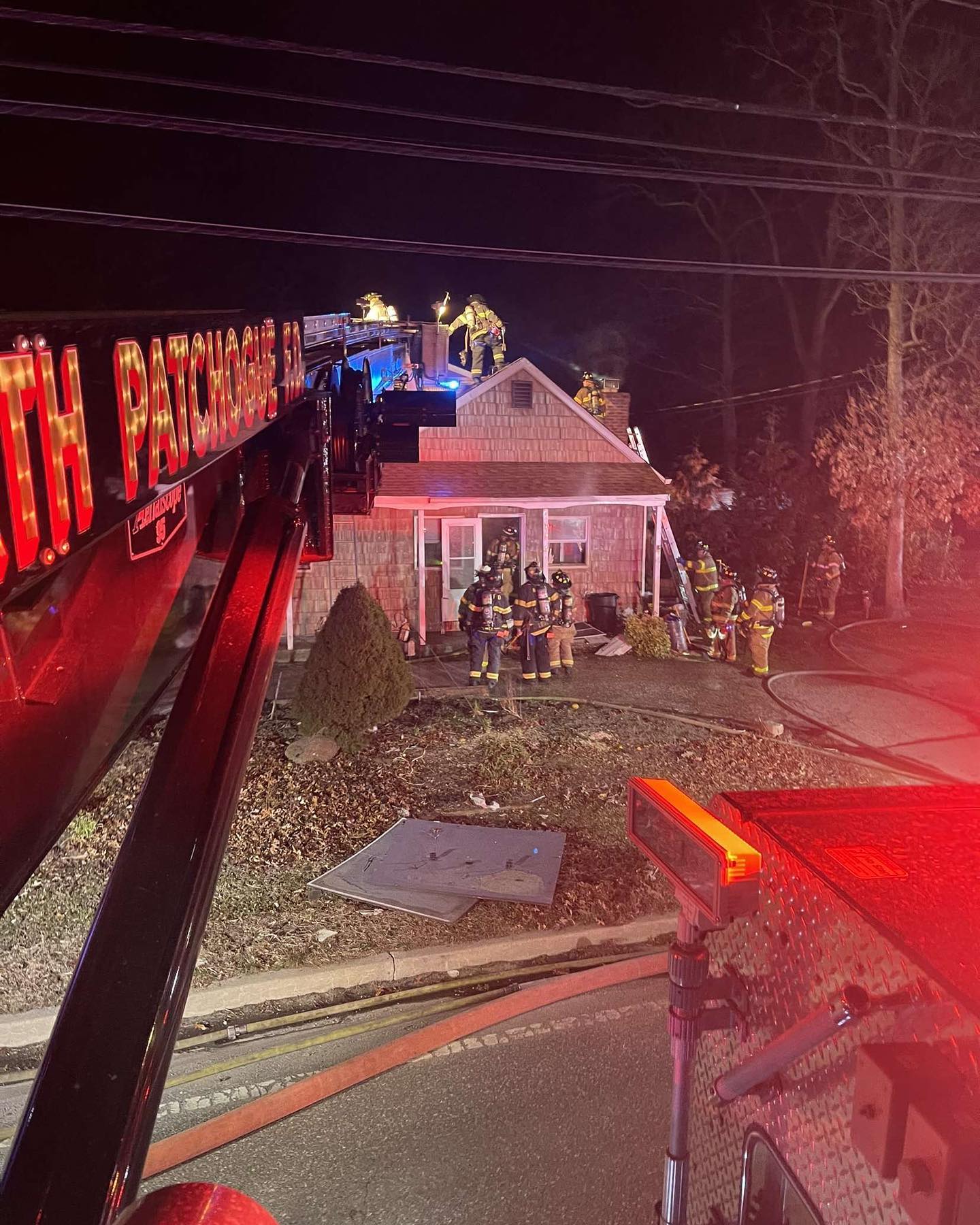 At approximately 0038hrs the North Patchogue Fire Department was dispatched for mutual aid to provide a Truck to Medford Fire Department @medfordfire_ny for a working residential Structure fire. Truck 12 responded and the crew went to work quickly upon arriving on the scene. Great work to all the crews that operated on the scene for the quick knockdown.