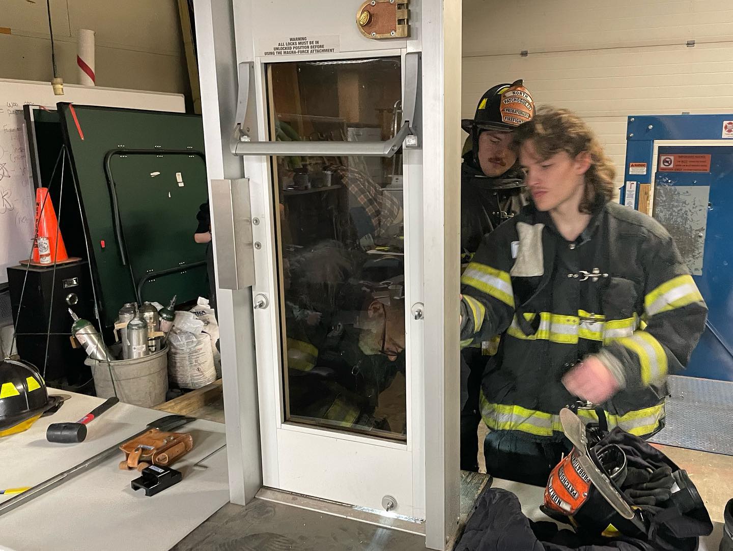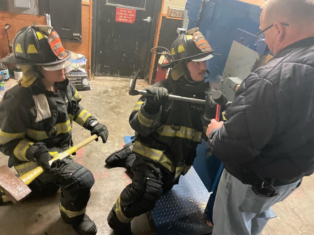 Probationary firefighters Ryan and Brendan Wassmer learn forcible entry techniques while attending probie class last night. Members faced scenarios that included forcing doors with manual tools such as a set of irons (Halligan and Axe), a hydraulic rabbit tool, and the K-tool which is used for opening up cylinder locks. NPFD IS ACTIVELY ACCEPTING APPLICATIONS FOR OUR SUMMER RECRUIT CLASS. Fill out the form to inquire on how to join!